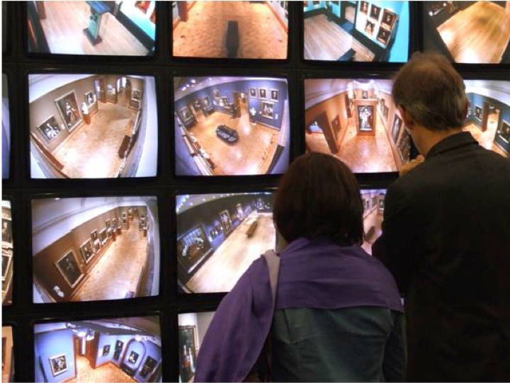 L’institution muséale, ayant pour mission de conserver et protéger des œuvres destinées à être vues, met simultanément en cause la surveillance, le regard et la place du visiteur. Longtemps passif face aux chefs-d’œuvre de l’art occidental, le spectateur s’est émancipé notamment depuis les années 1970 de son propre immobilisme en participant aujourd’hui à des installations interactives qui l’intègrent dans le processus de création. L’aphorisme de Marcel Duchamp affirmant que « c’est le regardeur qui fait le tableau » semble avoir trouvé son écho dans l’art contemporain. Au cœur de l’espace muséal surveillé, le spectateur est néanmoins celui qui voit et celui qui est vu, contrecarrant le statut de Spectateur émancipé défini par Jacques Rancière (2008). Ce positionnement médian du visiteur, oscillant entre le voir et l’être-vu, a inspiré des créateurs qui se sont joués du regard numérique et de ses caméras de surveillance dans des parties de cache-cache muséales (ré)créatives. Depuis les années 2000, des artistes se sont ainsi intéressés aux dispositifs de contrôle muséaux, les utilisant comme éléments prouvant leurs propres interventions ou les intégrant au cœur même de visites étroitement surveillées.